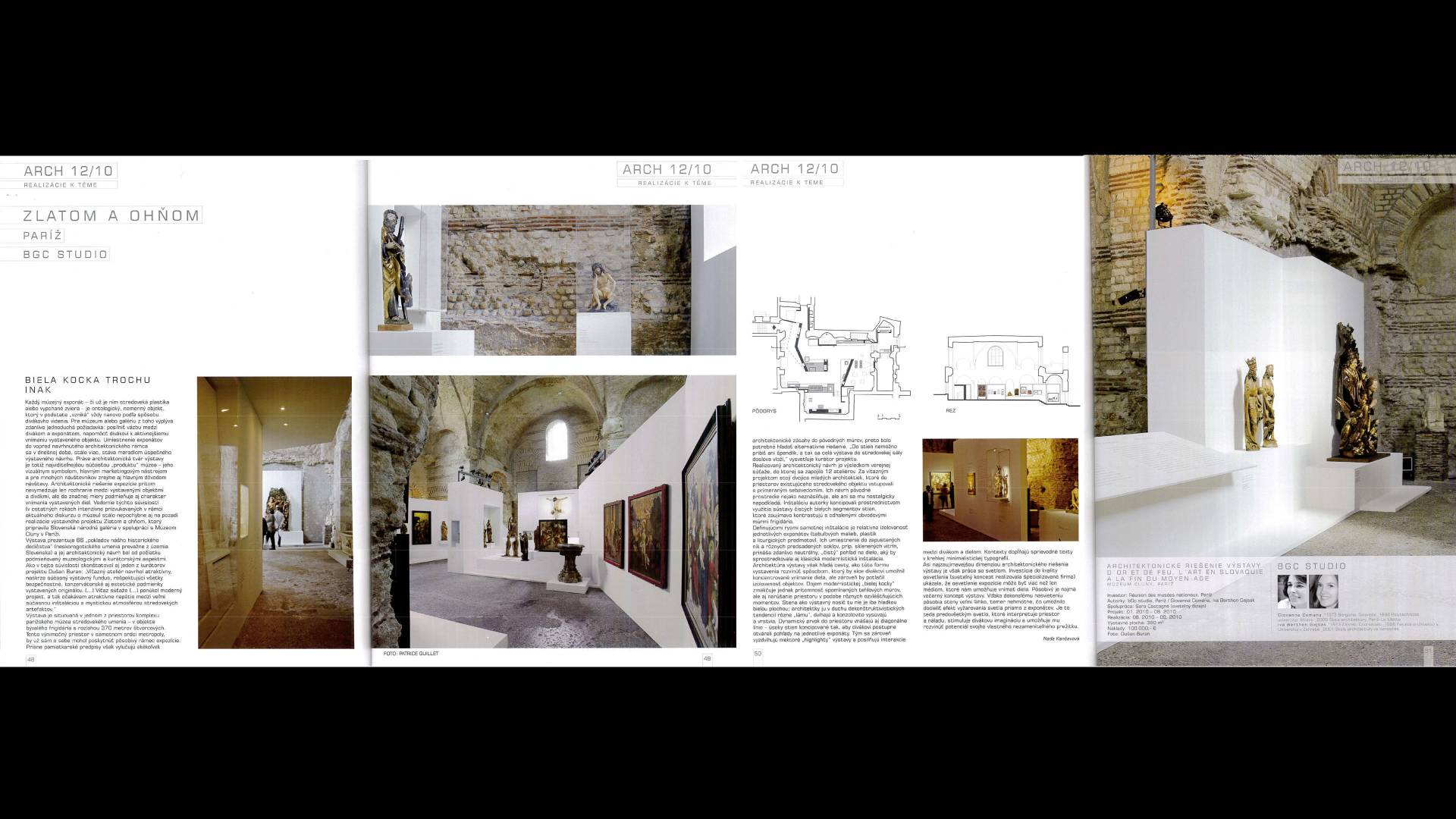 "... The exhibition benefits of a sober, refined, but particularly masterful scenography created by the architects Iva Berthon Gajsak and Giovanna Comana. Under the superbly designed lighting designed by Sara Castagné, they have superbly structured the recently renovated frigidarium of the Cluny thermal baths to allow an almost panoramic view of the exhibition, which is articulated around the centrepiece, the crucifix of Kezmarok, while sublimating the often monumental pieces that constitute real heritage treasures for Slovakia..."