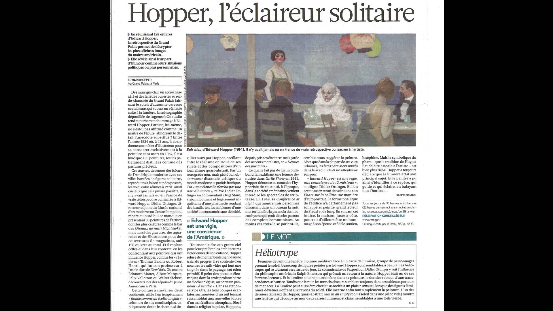 Sabine Gignoux, La Croix — Hopper, l’éclaireur solitaire — 2012 -